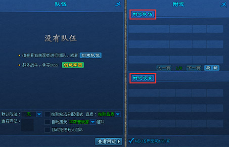 快捷键G或点击屏幕下方【队伍】按钮,即可进入组队界面。您可自己创建队伍,邀请附近玩家加入队伍或申请加入别人的队伍。