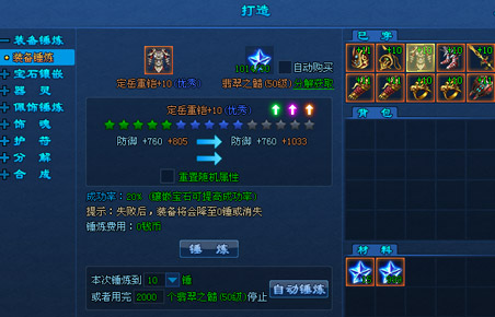 大侠对装备进行锤炼可以提升装备属性,锤炼装备需要消耗一定的锤炼材料-翡翠之髓。