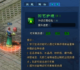 根据您所学的生活技能,快捷键“V”,打开生活技能界面,可查看到您所需要采集的资源。通过采集相应的资源,即可提升生活技能的等级,进而能采集更高级的资源。