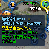 答:按F11或者游戏界面右上角“隐”,可开启隐藏玩家功能。