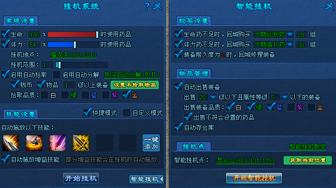 2、玩家可打开智能挂机界面(快捷键Ctrl+Z),对智能挂机功能进行设置;