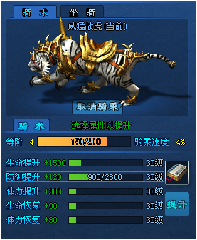 1、骑术的升级需要使用【御马宝典】,进行提升;