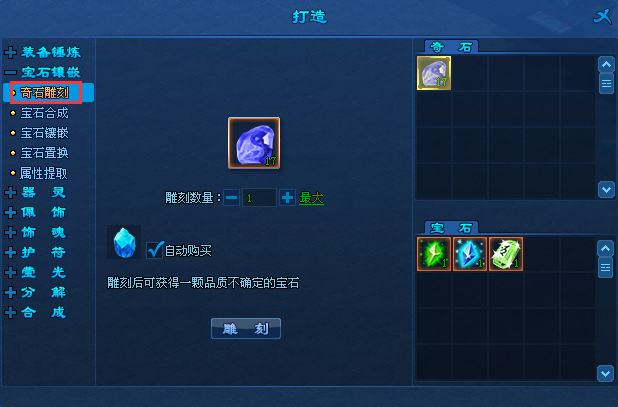 2、使用“冰彩玉髓”雕刻奇石,可获得宝石和其他游戏道具;