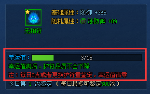 2、当幸运值满时,鉴定该护符其品质不会下降;