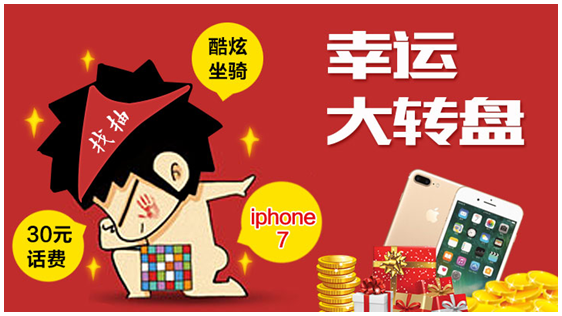 活动奖励:幸运大转盘奖品丰厚,iphone7,手机话费,炫酷坐骑(含期限坐骑和永久坐骑),巨额元宝等,统统免费送,大波福利等着你!