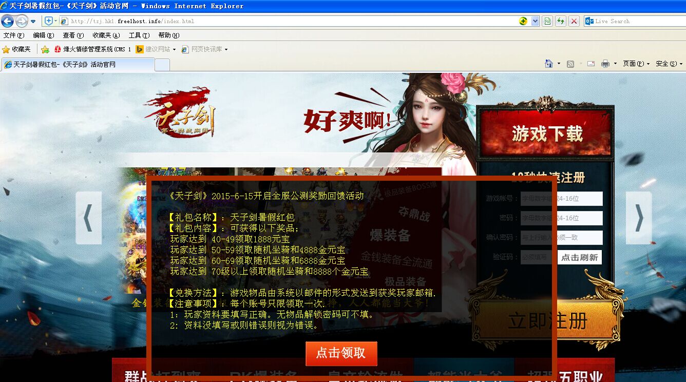 游戏内发布“天子剑暑假红包”信息,让玩家到百度进行搜索。玩家一旦按骗子发布的信息进行百度搜索就会进入到骗子事先建好的虚假官网,这里要特别提醒一下,凡是官方举办的所有活动都不需要玩家在页面上输入帐号及密码的,凡是要求玩家输密码的,绝对是骗子无误!