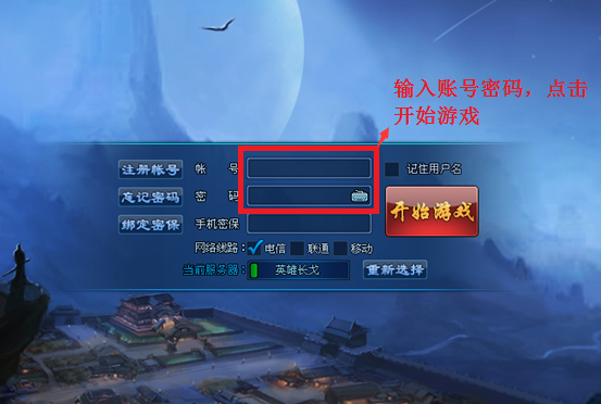 1、打开《天子剑》客户端,并登录已注册的账号;