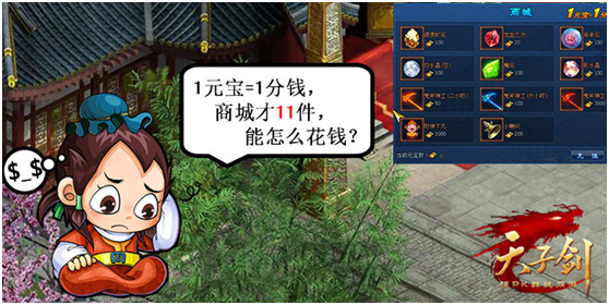 有一种商城叫《天子剑》商城,不卖装备不卖法宝,从头到尾11件,微消费不坑爹,你值得拥有!