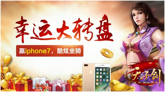 官方微信幸运大转盘活动火热进行中,活动期间,关注《天子剑》官方微信,每天可免费抽奖一次,分享活动还可额外获得两次抽奖机会,iPhone7手机,话费,酷炫坐骑统统“转”出来!