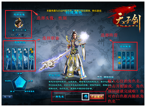 ③ 进入新服【风云再起】,选择自己喜欢的职业,抢夺霸气名字,预创建角色成功!