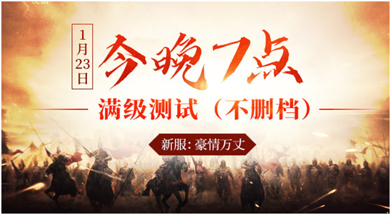 热血、激情、为战而生!《天子剑》满级测试(不删档)新服【豪情万丈】将于今晚7点正式开启啦!战友们,你们准备好了吗?我们的激情需要释放,我们的热血需要抛洒,你还在等什么呢?