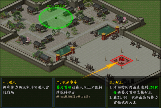 新服首场争王战的紧张和激烈程度,是不言而喻的!各阵营王,正虚位以待,若想获得该荣誉的玩家必须是“势力首领”,方能登高一呼而云集响应!