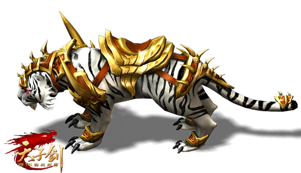 金威,据传是上古凶神白虎的后代,遍体通白,夹杂着黑色条纹,身披纯金打造的金甲后,更是威风凛凛,锋不可当。