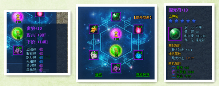 通过护符锤炼,可以大幅度的提高角色战力,值得一提的是10锤及以上的护符,锤炼成功后随机属性将提高一阶。例如护符鉴定出来的随机属性等阶为8.9.6,那锤炼成功到+10其随机属性等阶会提升到9.10.7,+11随机属性等阶会提升到10.11.8,以此类推。